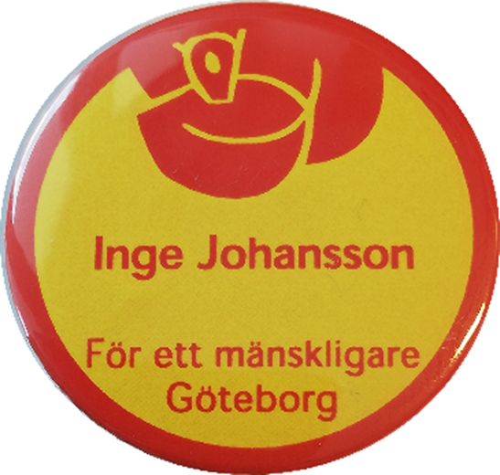 Inge Johansson För ett mänskligare Göteborg – en av de två grundarna av Arbetarrörelsens Minnesbiblioteks märkessamling, fick sin personliga knapp som kandidat till kommunvalet 2002. 63 andra kandidater fick också en personlig knapp.