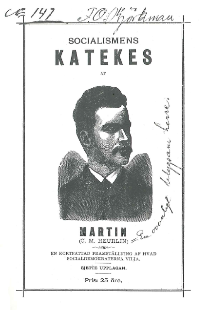 Månadens bok innehåller” Agitationsbroschyrer utgivna inom arbetarrörelsen 1881-1909.” Vi får möta pionjärerna August Palm, Axel Danielsson m.fl i deras egna texter. Den i Göteborg kände skräddarmästaren CM Heurlin blev riksbekant som signaturen Martin. Han författade sin egen ”Socialismens Lilla Katekes” med tio budord och förklaringar till dessa precis som en annan Martin gjort tidigare.