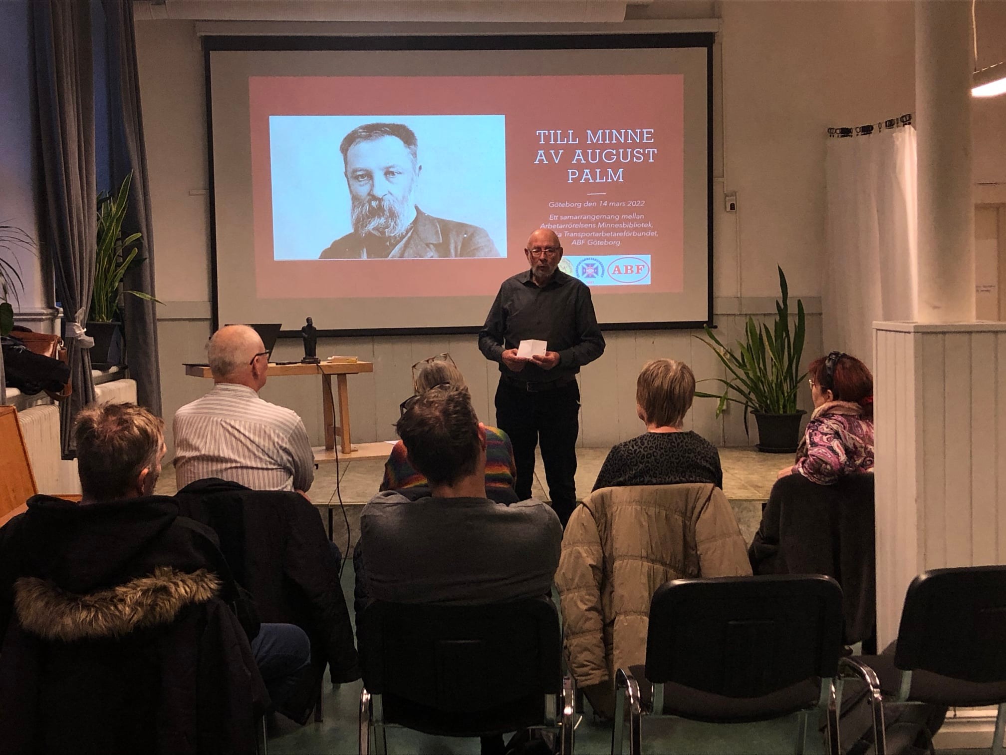 Den 14 mars år 2022 samlades en grupp socialdemokrater i Göteborg på Viktoriahuset i Göteborg för att minnas och hedra August Palms. Det var ett samarrangemang mellan Arbetarrörelsens Minnesbiblioteket, Svenska Transportarbetareförbundet och ABF Göteborg. Inledningsanförande hölls av Arbetarrörelsens Minnesbiblioteket ordförande Sören Björkman, därefter talade Roger Hultgren för Svenska Transportarbetareförbundet och sedan höll Carl T. Ek ett föredrag om August Palm och hans livsgärning.