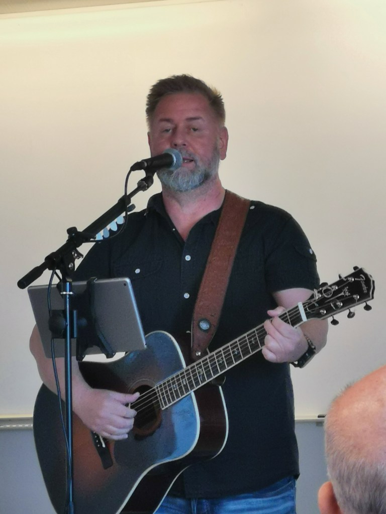 Underhållningen för dagen stod Rasmus Andersson och Maria Hörnelius för. Rasmus Andersson bjöd på ett eget musikprogram, och även en musikalisk frågelek kallad ”28 små tecken – till Arbetarrörelsens Minnesbibliotek” där det i texten gömts ett antal kända författare och boktitlar som skulle listas ut vilka de var. Det var tydligt att det var uppskattat av de närvarande. Maria Hörnelius, regissör och skådespelerska vid Göteborgs stadsteater, berättade på ett stålande vis om sitt samarbete och sin vänskap med Kent Andersson och läste också texter av honom. Det hela var mycket inlevelsefullt och det blev många skratt.
