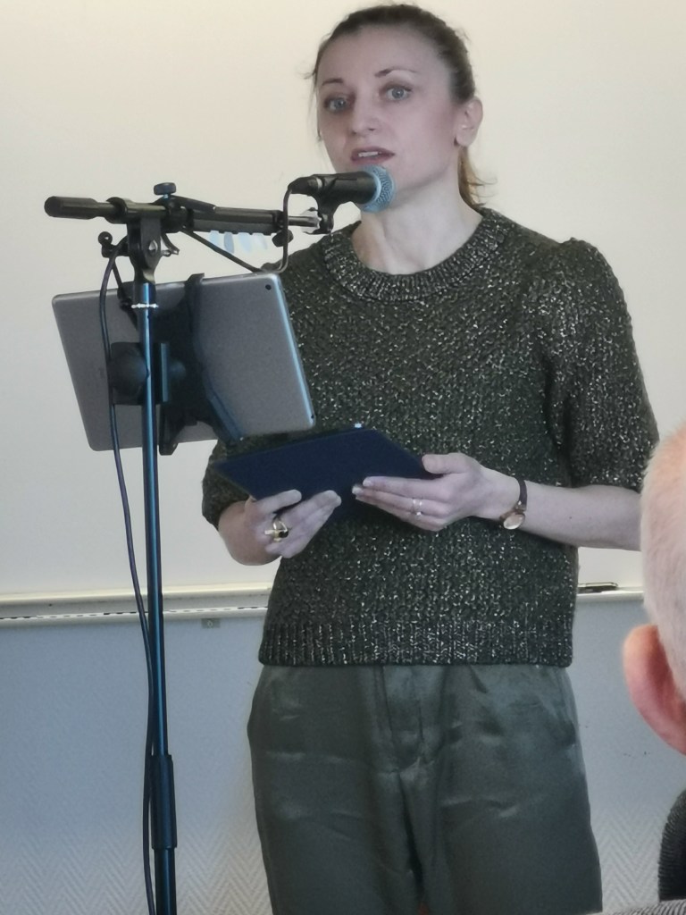 De närvarande fick därefter lyssna till Maria Voyvodova, fd kulturkommunalråd i Göteborg och numera gruppledare för Socialdemokraterna i kulturnämnden, som talade om Minnesbibliotekets roll i framtiden som kulturbärare inom Arbetarrörelsens och den viktiga roll som det har för svensk Arbetarrörelses framtid.