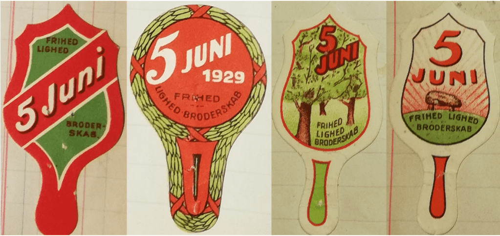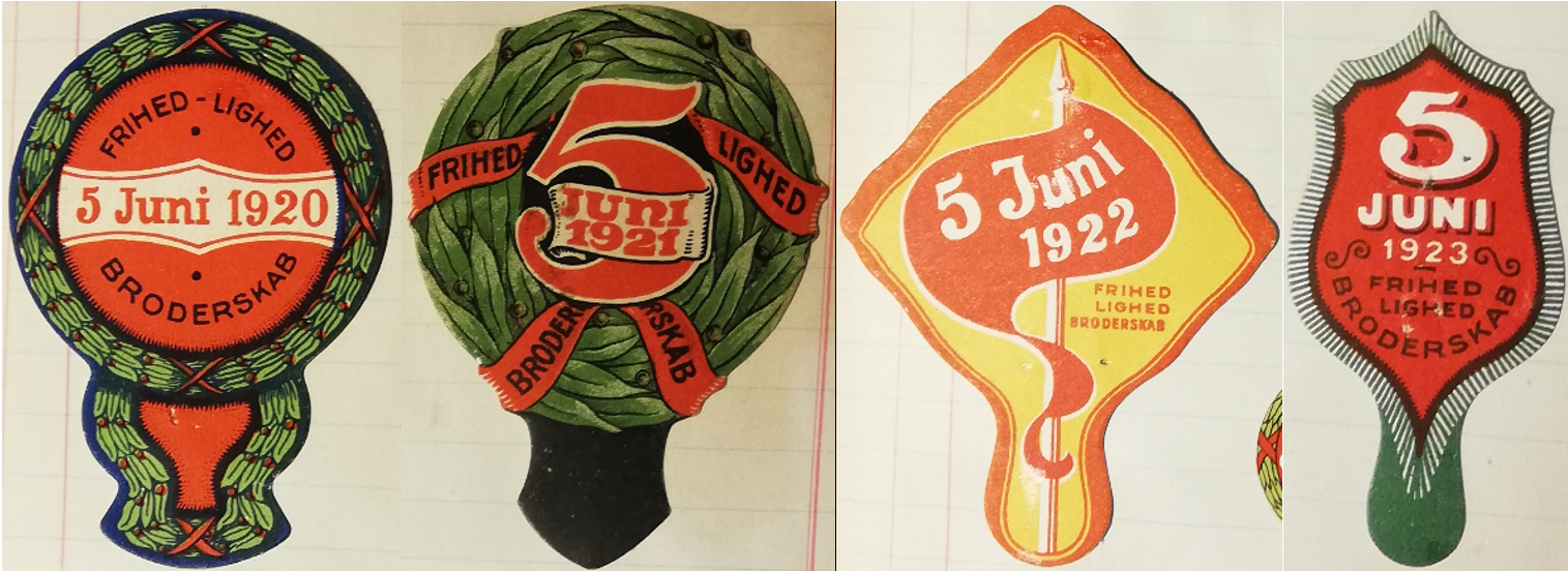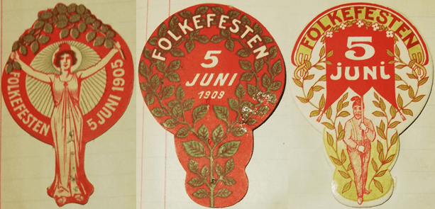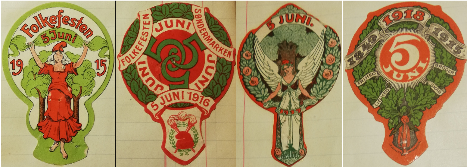 Arbetarrörelsens Minnesbiblioteket i Göteborg kom över ett danskt fotoalbum med inklistrade kartongmärken, den 15 december 2019 till sin samling av danska märken från arbetarrörelsen. I fotoalbumet var det inskrivet årtal vid märkena utan årtal i fotoalbumet. Text på märkena är bl.a. Folkfesten Grundlov, Frihed lighed broderskab. Kartongmärkena är från; 1905, 1909, 1910, 1911, 1912, 1913, 1914, 1915, 1916, 1917, 1918, 1920, 1921, 1922, 1923, 1924, 1929, 1919?