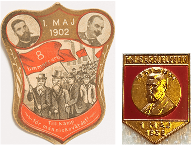 BILD 2: Socialdemokraternas Första majmärke 1938 med motiv av Karl Johan Gabrielsson