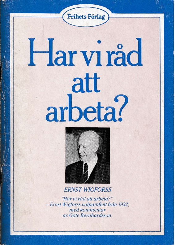 Ernst skrev den som ett inlägg i inför valet 1932 och den gavs ut av SSU inför valet 1983 som ett inlägg i den då radande politiska striden om samhällets ansvar för sysselsättningen. Tyvärr har den lika hög aktualitet i dagens debatt om synen på statens roll när det gäller sysselsättning och ekonomisk utveckling.