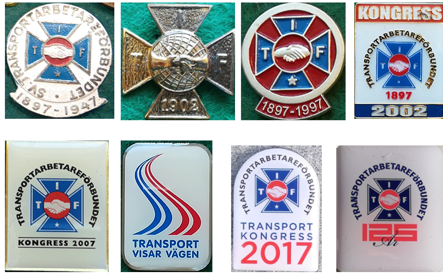 - 1897 bildades Svenska transportarbetareförbundet på initiativ av Charles Lindley (1865–1957) som var förbundets förste ordförande. Från början kunde det Svenska förbundet ses som en självständig sektion till det Internationella transportarbetarförbundet och därför har, I:et på märket behållits. Märket är ett Sankt Georgskors, en engelsk orden för samhälleliga insatser.